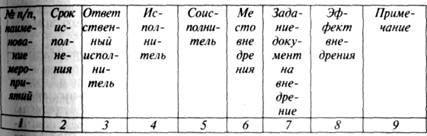 Рекомендательный этап предусматривает рассмотрение и утверждение проекта совершенствования СУ руководством организации здесь принимается и решение о порядке его внедрения. На данном этапе составляется и утверждается также план-график реализации проекта (табл. 7.9).
