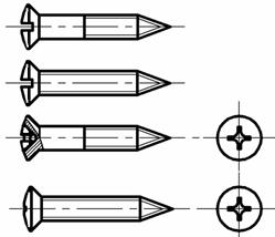 В тех случаях, когда закрепляемая деталь или узел при эксплуатации механизма не подлежит съему, а следовательно, винты завинчивают только один раз, могут быть использованы самонарезающие винты. Эти винты наиболее рационально использовать для деталей из цветных металлов и пластмасс, при этом предварительно предусматривают отверстия под винты, диаметр которых немного меньше наружного диаметра винта.
