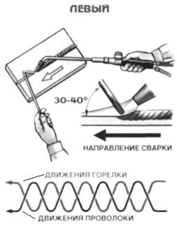 | Качество шва при правом способе сварки выше, чем при левом, так как металл лучше защищен факелом |
