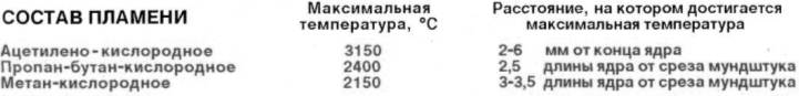 Наибольшее распространение в качестве горючего газа нашел ацетилен. В зависимости соотношения в горючей смеси ацетилена и кислорода различают три вида пламени: