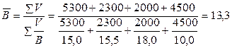 Таким образом, средняя выработка на одного рабочего по совокупности заводов составила 13,3 тыс. руб. Для расчета использовали формулу средней гармонической взвешенной.