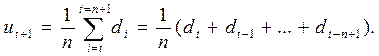 Традиционным методом прогнозирования будущего значения показателя является усреднение прошлых значений. Пусть имеется ряд данных {..., dt-n+i,..., dt-1, dt}. Возьмем последние п значений, вычислим по ним среднее ut+1, которое будет рассматриваться в качестве прогноза на момент времени t + 1, т. е.