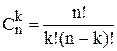 Пусть Х – множество из n элементов. Любое подмножество Y из k элементов называется сочетанием k элементов из n элементов. Очевидно, что