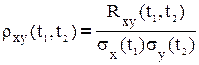 Нормированнойвзаимной к орреляционной функцией двух случайных функций X(t) и Y(t) называют неслучайную функцию двух независимых аргументов t1 и t2, которая определяется следующим образом: