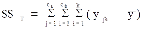 - вариация фактора В — показатель вариации, вызванной влиянием на Y фактора B;