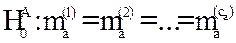 и альтернативной гипотезы H1: не все mj равны используется F – критерий Фишера: