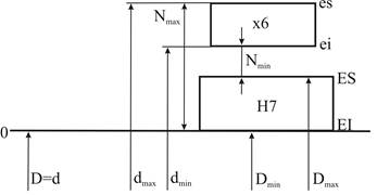 Nmax = d max - Dmin = es – EI.