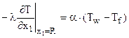 б) на внешней границе теплообмен определяется температурой окружающей среды Tf и коэффициентом теплоотдачи