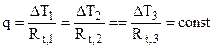 т.е. перепад температур, на каком либо участке теплопередачи прямо пропорционален термическому сопротивлению данного участка.