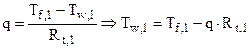 в) по найденному значению q и одной из известных температур рассчитывают остальные неизвестные температуры слоев и жидкостей.