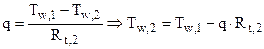 и, после несложных алгебраических преобразований, получаем выражение для расчета плотности теплового потока через плоскую стенку: