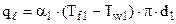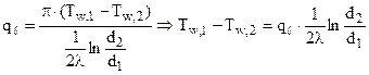 в формулу расчета линейной плотности теплового потока через цилиндрическую стенку: