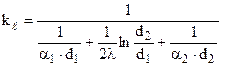 – линейный коэффициент теплопередачи через цилиндрическую стенку; k – коэффициент теплопередачи через плоскую стенку;