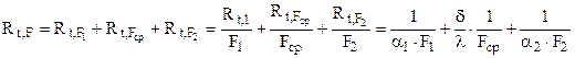 Термическое сопротивление теплопередачи стенки, учитывающее площади поверхностей теплообмена, равно