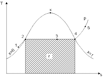 Рис.5.1. Фазовая (T, s) – диаграмма водяного пара