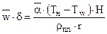– средняя скорость течения пленки в данном сечении, м/с; d – толщина пленки, м;