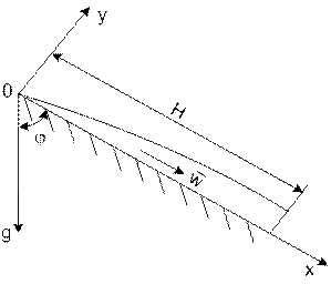 м/с2 – ускорение свободного падения; x – координата, отсчитываемая от верхней точки поверхности, м;