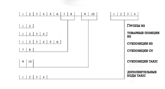 Рис.2.3.1. Структура кодов TARIC и дополнительные коды