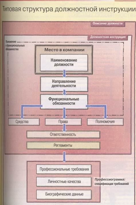 28. Итак, хотя канонической формой должностнойй инструкции нет, в ее составе можно выделить два основных блока — Положение функциональных обязанностях (восходящее к Тейлору) и описание баланса обязанностей, и ответственности (вклад Файоля).