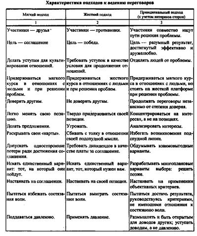 В табл. 4.2.2.1. приведена характеристика подходов к ведению переговоров.