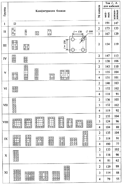 1.3.20. Допустимые длительные токи для кабелей, прокладываемых в блоках, следует определять по эмпирической формуле
