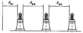 4.2.89. Неогражденные неизолированные ведущие части различных цепей, находящиеся на высоте, превышающей размер Д по табл. 4.2.7 должны быть расположены на таком расстоянии одна от другой, чтобы после отключения какой либо цепи (например, секции шин) было обеспечено ее безопасное обслуживание при наличии напряжения в соседних цепях. В частности, расстояние между неогражденными токоведущими частями, расположенными с двух сторон коридора обслуживания, должно соответствовать размеру Г по табл. 4.2.7 (см. рис. 4.2.16).