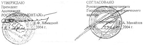 | УТВЕРЖДАЮ Президент Ассоциации "РОСЭЛЕКТРОМОНТАЖ" | СОГЛАСОВАНО Руководитель ГОСЭНЕРГОНАДЗОРА Минтопэнерго России |