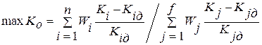 Простейшим методом объединения критериев является их суммирование с учетом весов Wi К0 = ∑ WiKi, где n — количество объединяемых критериев; Wi — весовой коэффициент.