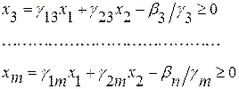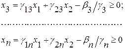 Найдем отрезки х1 и х2, отсекаемые прямой на осях oх1 и ох2, положив х1 = 0, а затем х2 = 0, х1 = β3/γ13γ3, х2 = Рз/β3/γ23γ3.