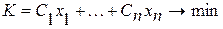 Пример. Минимизировать целевую функцию К = С1x1 + С2х2 → min при известных ограничениях