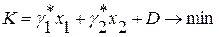 Преобразуем целевую функцию к виду К* = γ1*x1 + γ2*x2, где K*=K-D*.