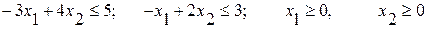 Затем полагаем х4 = 0 из второго уравнения (3.5) и снова проводим прямую и штриховкой отмечаем область, где х4 > 0 и т. д. Получаем область допустимых решений (ОДР), она всегда выпукла.