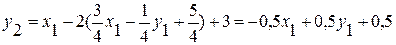 Запишем целевую функцию через новые свободные переменные. Найдем x1 из этого уравнения: x1 = — 2у2 + у1 + 1. Под ставим его в первое уравнение: x2 = — 1.5у2 + 0,5у1 + 2. Введем значения х1 и x2 в целевую функцию: