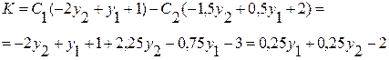 При у1 = 0, у2 = 0 K = — 2. Следовательно, x1 = 1, x2 = 2.