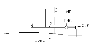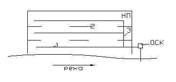 Перпендикулярная – коллекторы трассируют перпендикулярно оси водоема, применяется при уклоне рельефа к водоему и отсутствии очистки (ОСК).