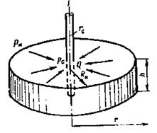 | Рис.1 Плоскорадиальный приток газа к скважине |
