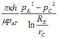 Разделив переменные и проинтегрировав уравнение в пределах от rc до RK и от pc до pk, получим: