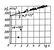 Рис.1. Вид кривой нарастания забойного давления, обработанной в координатах от |