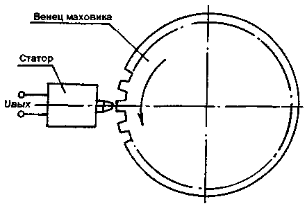 Датчик частоты вращения коленчатого вала двигателя. Статор датчика укреплен на кожухе маховика в непосредственной близости от зубчатого венца маховика.