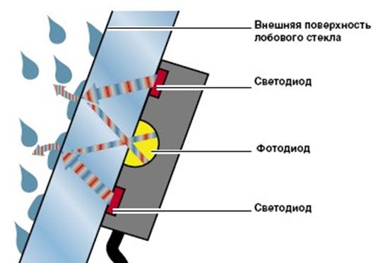 Оптический элемент устроен таким образом, что значительная часть излучения в этом случае направляется на фотодиод. Хладопроизводительность климатической установки увеличивается, и нагревающее действие солнечного света компенсируется.