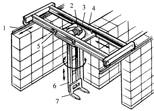 - являются одной из разновидностей мостовых кранов. Вместо гибкой канатной грузовой подвески они имеют вертикальную колонну, которая крепится к грузовой тележке, по колонне перемещается вилочный или иной грузозахват.