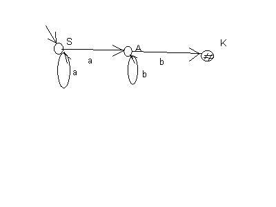 2. Каждому правилу A®aB сопоставим дугу из вершины A в вершину В и пометим ее терминальным символом а.