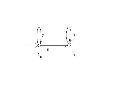 Например, для лингвистического автомата SA= <Q, {a, b, c}, q0, F, {q1}>, функция переходов которого