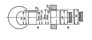 Таким образом при контроле валов годными окажутся валы, которые проходят в раствор губок ПР = dmax и не проходят НЕ = Dmax. В соответствии с этим калибры делятся на проходные ПР и непроходные НЕ. Детали, которые не проходят через проходные калибры, относятся к исправленному браку, а детали, которые проходят через непроходящее к неисправленному.