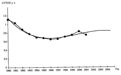 При сохранении прошлых тенденций в развитии показателей, составляющих интегральный показатель ССТОР, можно получить его генетический прогноз (рис. 11.11).