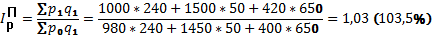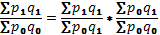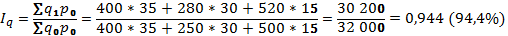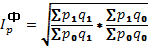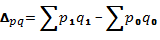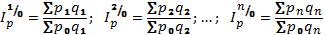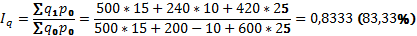 q0 и q1 - количество единиц той же продукции соответственно за базисный и отчетный периоды.