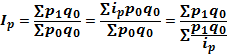 Учитывая то, что ip=p1/p0, можно записать средний арифметический и средний гармонический индексы цен, тождественные индексу Пааше (8,17):
