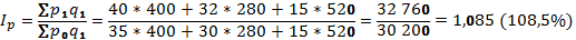 Следовательно, за этот период цены на продукцию предприятия увеличились на 8,5%.