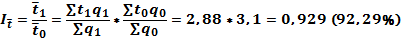 Где d0 и d1 - удельные веса количества продукции соответственно за базисный и отчетный периоды.