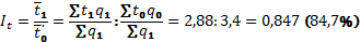 где t0 и t1 - уровни трудоемкости единицы продукции соответственно за базисный и отчетный периоды;